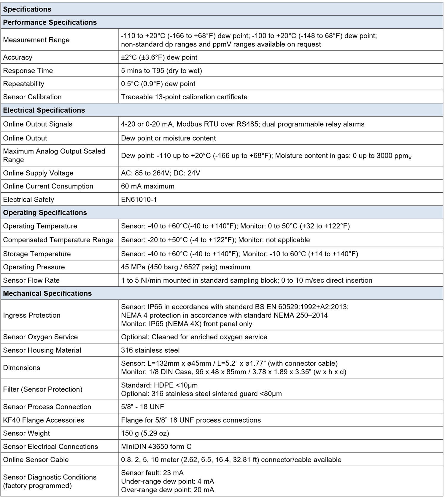 Easy to install and maintain, the Easidew Online Hygrometer measures and displays dew point and moisture content for use in a wide range of moisture applications. The Easidew Online display provides analog, digital, and dual relay alarm outputs. This hygrometer is compatible with the entire Easidew Transmitter range to provide local readings as well as re-transmitted control signal.
