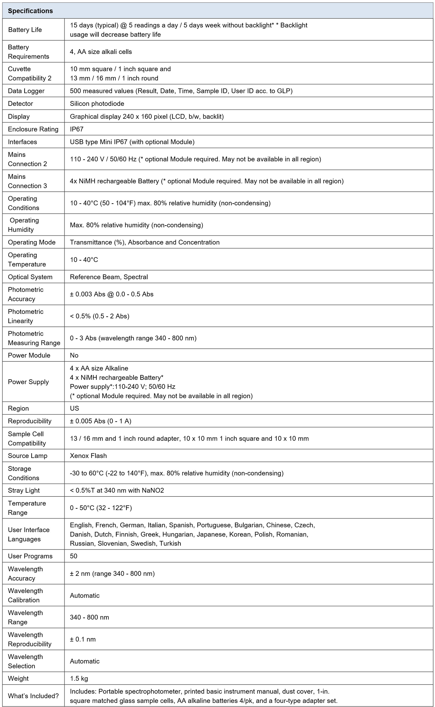 Accuracy – Tests are performed with a wavelength range of 340 to 800 nm, which make this a field instrument you can use to find results typically only seen in laboratory instruments.