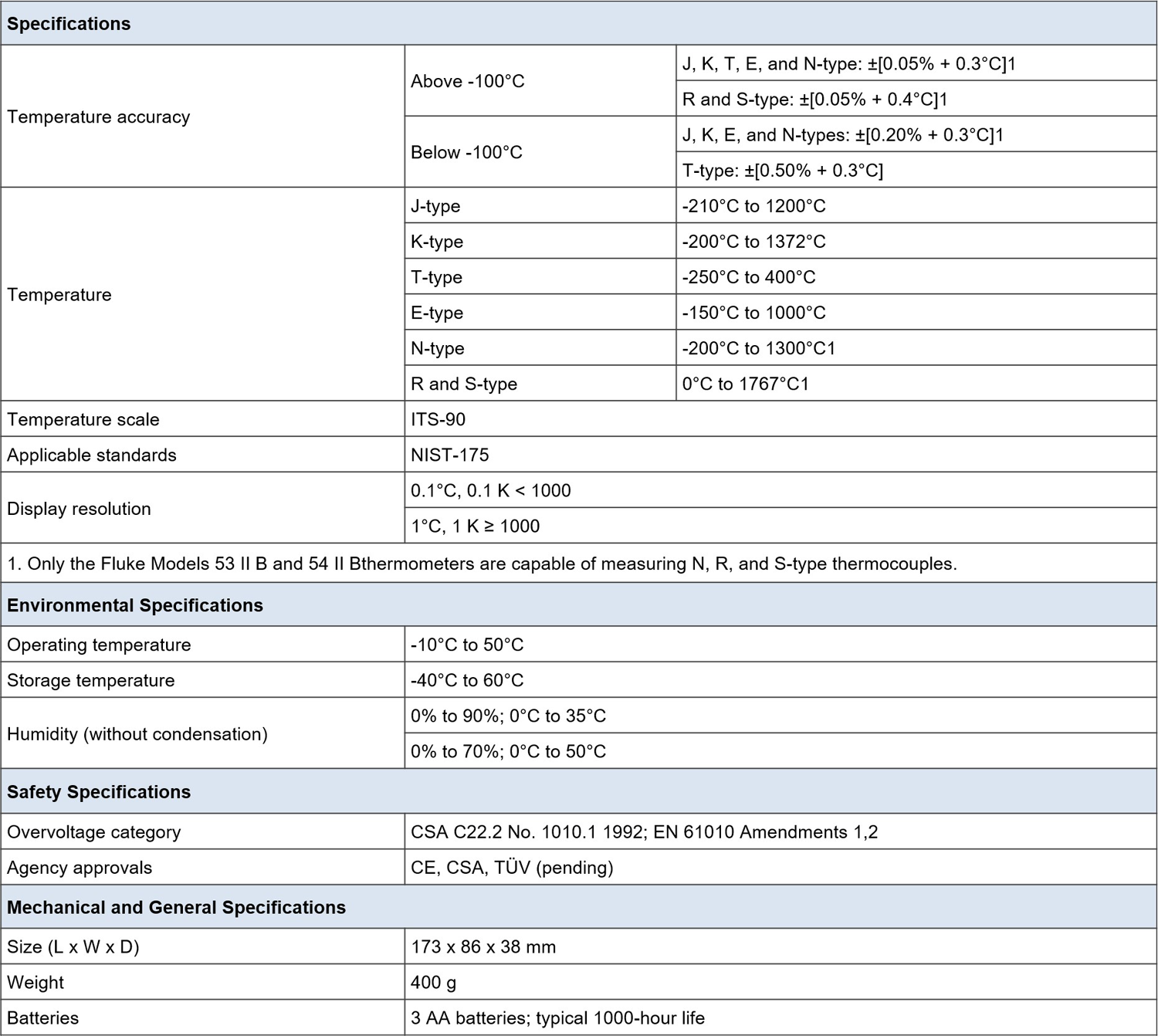 • Measures J, K, T, and E-type thermocouples