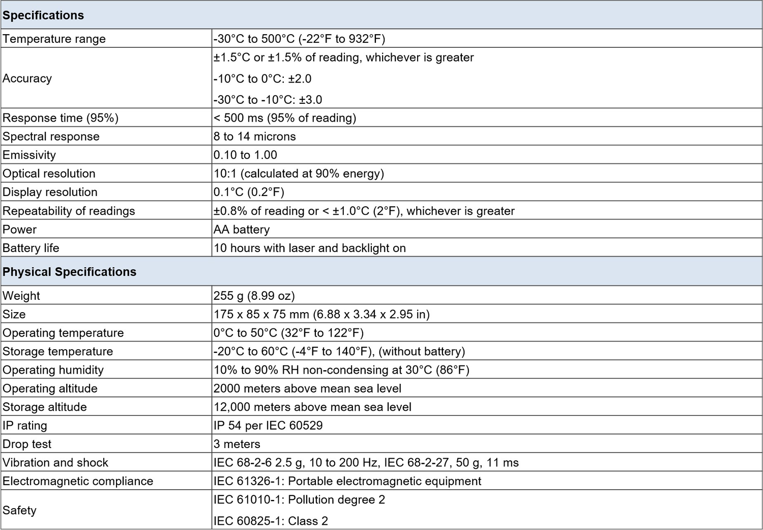 The Fluke 62 MAX Infrared thermometer delivers many of the features of the Fluke 62 MAX+, but features a single laser and 10:1 distance to spot ratio. You can use the Fluke 62 MAX to perform non-contact temperature measurements on transformers, motors, pumps, panels, breakers, compressors, duct, steam lines, valves, and vents. It is small in size and extremely easy to use. The single laser helps you pinpoint the target for more accurate readings and makes it easier to measure temperatures in hard to reach areas. With its IP54 rating for dust and water resistance you can rely the Fluke 62 MAX to deliver accurate, repeatable temperature measurements, rain or shine, in even the dirtiest and dustiest industrial sites. And it’s rugged enough to take a 3-meter drop so no worries even if you work from a ladder.