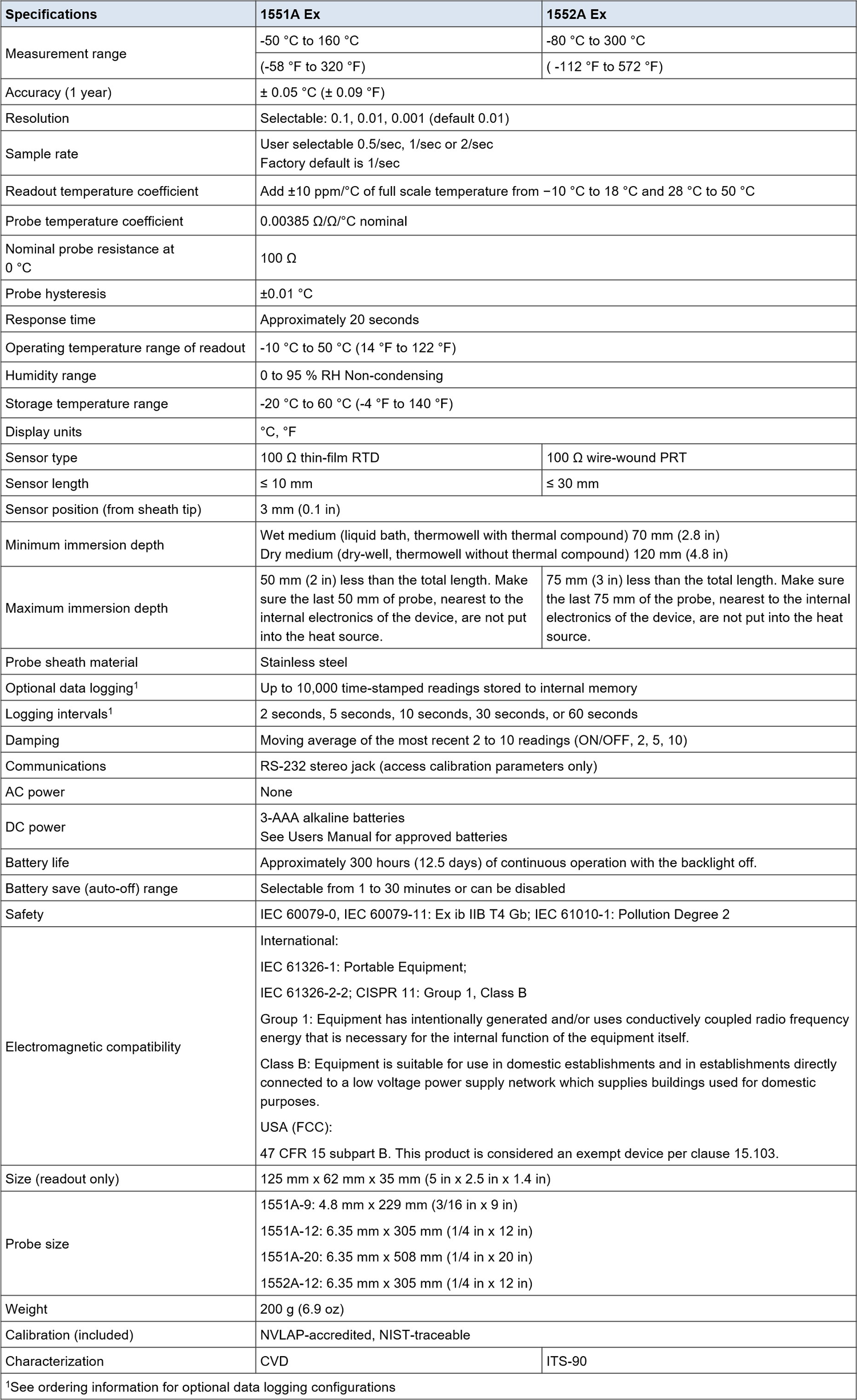 Using a glass-stem mercury- or spirit-filled thermometer at different immersion depths, or at significantly different ambient temperatures from which it was calibrated, may require the application of emergent-stem corrections that can be tedious but necessary to calculate an accurate measurement. This isn’t required with the “Stik” Thermometer. The sensor of the 1551A Ex requires a minimum immersion depth of only seven centimeters (2.8 inches), with no appreciable effect on the measured temperature due to heat loss through stem conduction. Some digital thermometers can become less accurate when used outside a narrow range of ambient temperatures. This isn’t the case for the “Stik” Thermometer. Your measurement remains accurate in ambient temperatures from -10 degrees to 50 degrees celsius (14 degrees to 122 degrees fahrenheit). With a superior probe design combined with electronic functions that assist accurate measurement, the “Stik” Thermometer surpasses the capabilities of other digital thermometers and is the perfect substitute for your mercury thermometers. 1In order to minimize sensor drift, the probe should always be protected from mechanical shock.