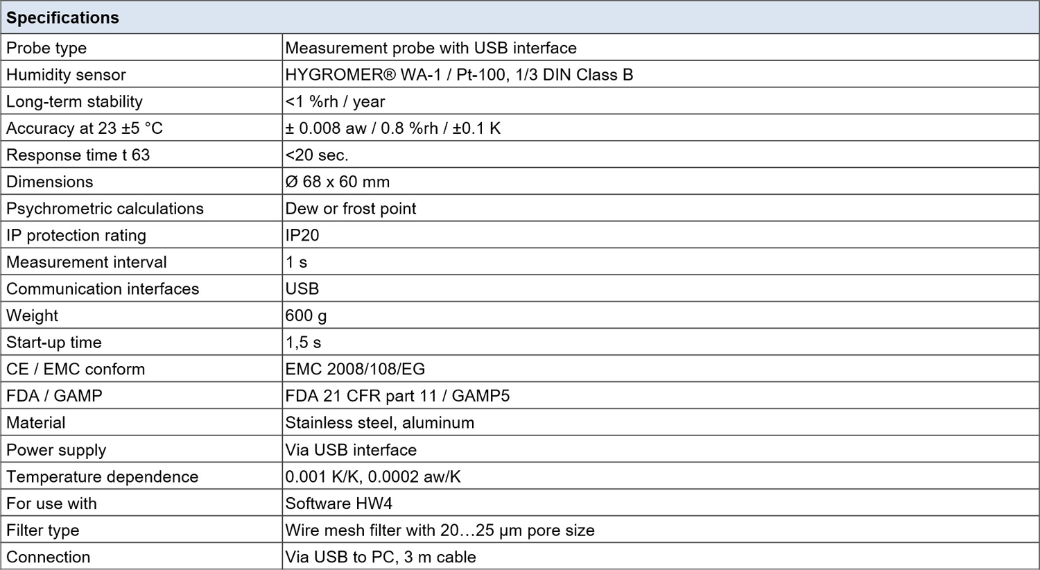 USB probes can be ordered as single probe or as a set including the HW4 software with Aw Quick function. The set offers all possibilities to measure water activity.